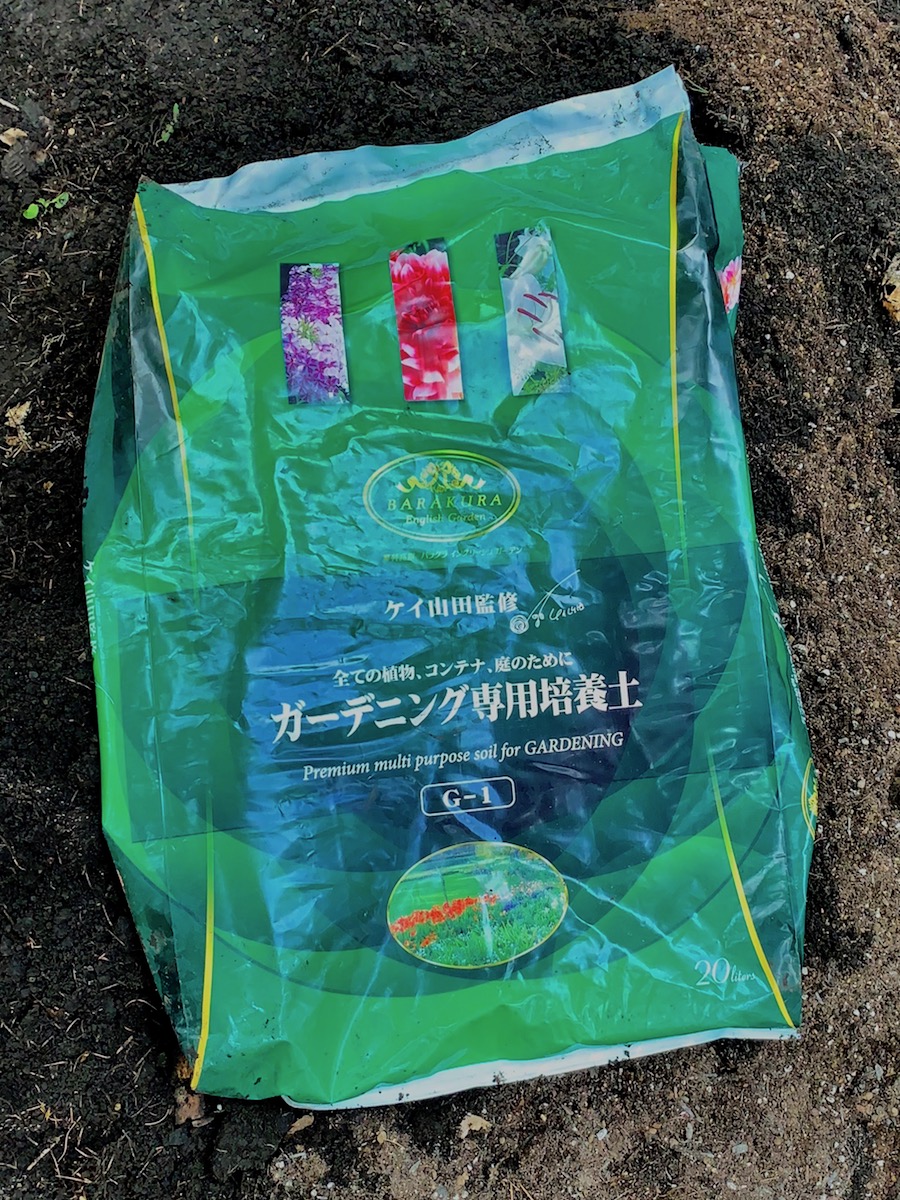 バラクラで購入した花用培養土を混ぜてベッドの出来上がり。